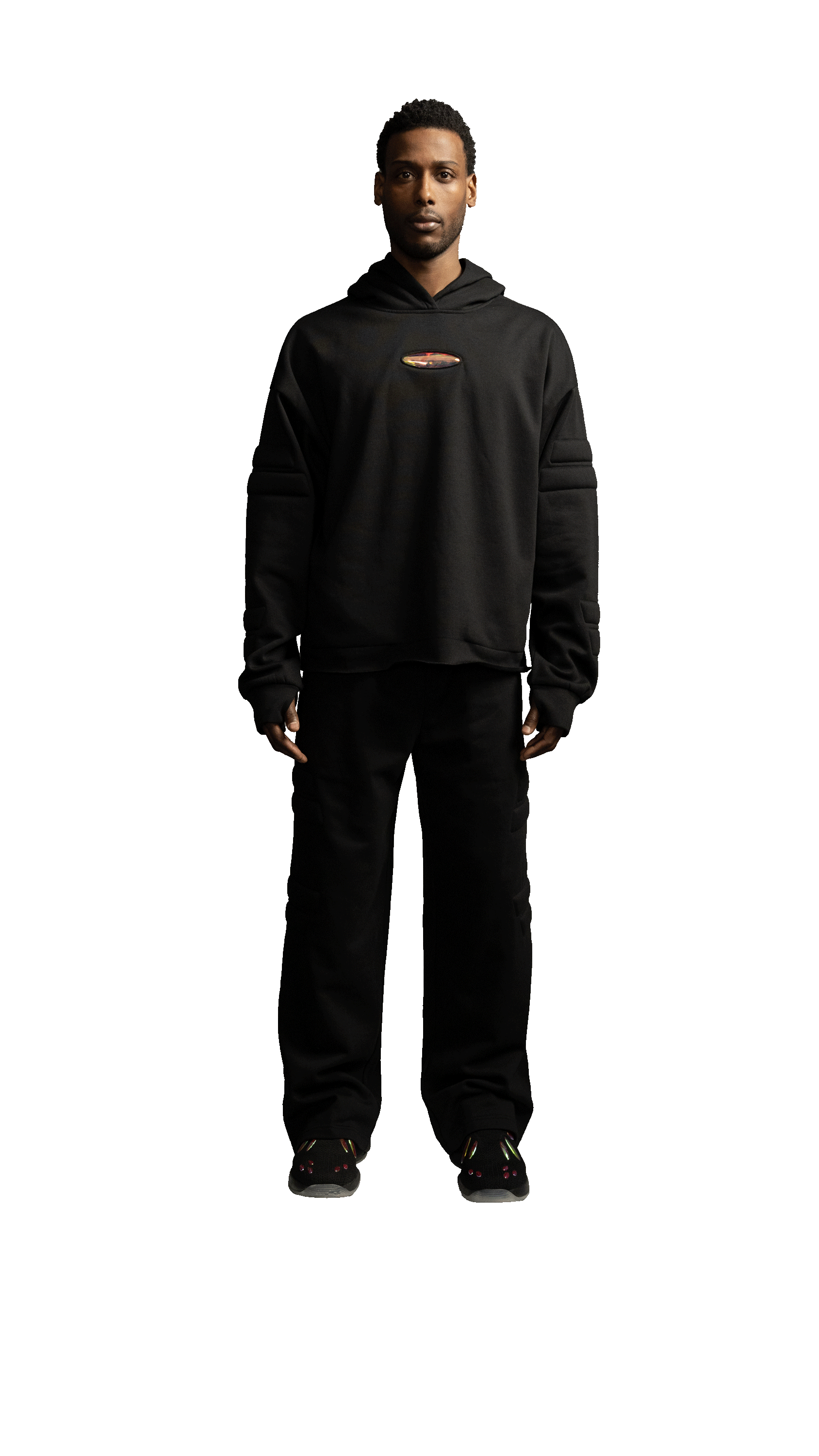 Featuring our signature 741 iridescent emblem at center front.