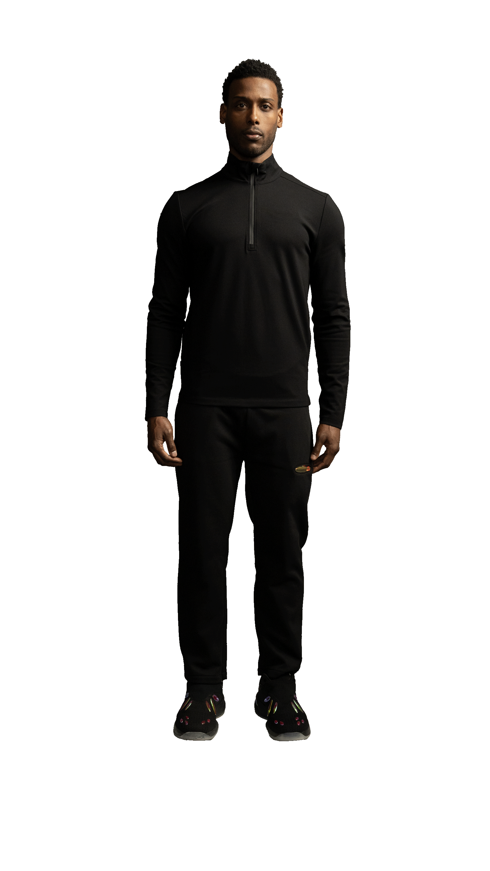 Our long-sleeve quarter zip T-shirt crafted from our “kinetic” fabric—a durable blend of rayon, nylon, and spandex designed to maintain its shape. Featuring a clean, fitted silhouette and pockets at side seam. This piece transitions seamlessly between layering and standalone wear. Featuring our signature iridescent emblem at wearer’s left upper arm.