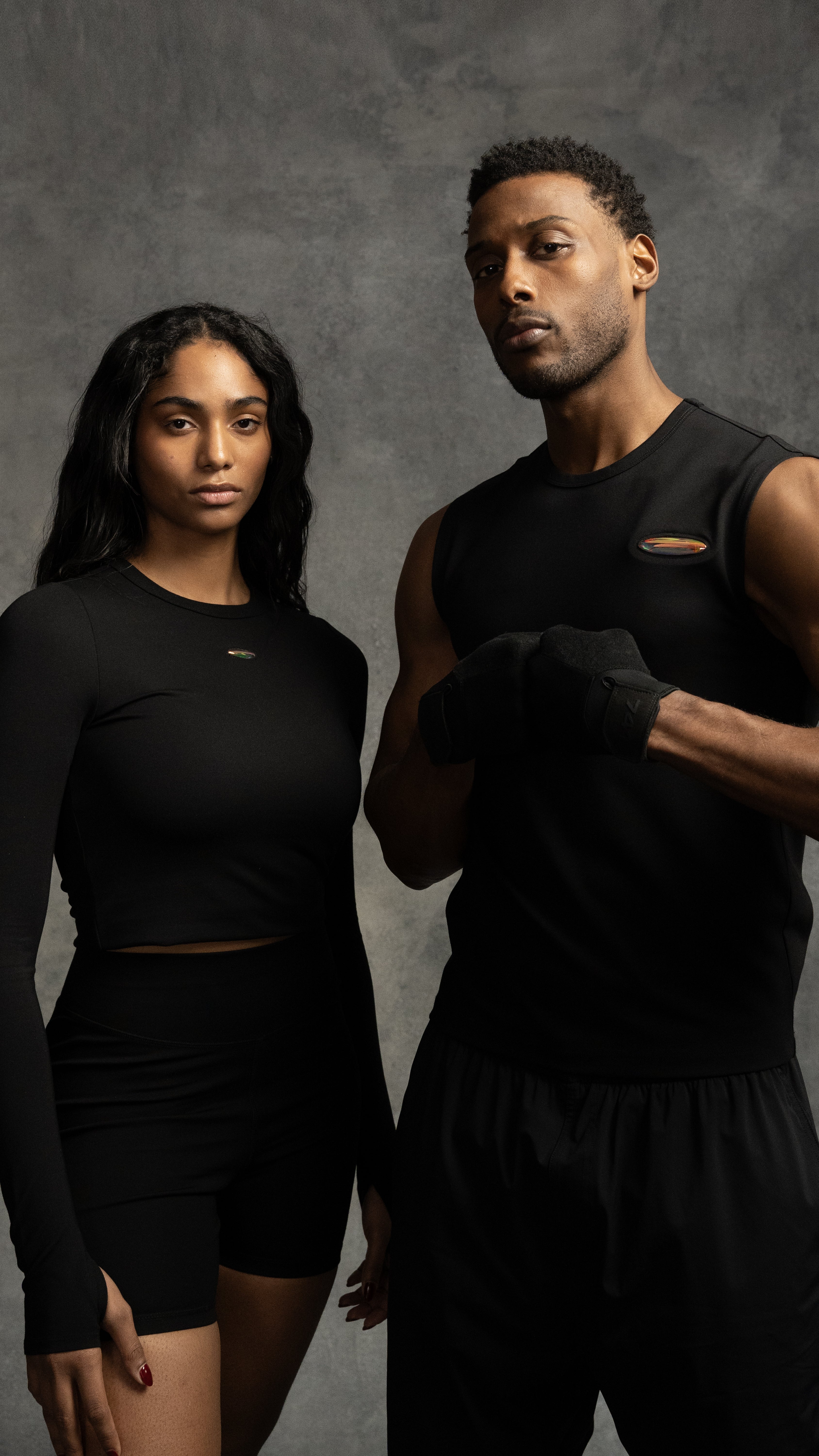 Our fitted sleeveless T-shirt is crafted from “kinetic” fabric—a durable blended knit fabric with compression-like recovery to ensure a clean, fitted silhouette that moves with you. Designed to transition seamlessly between layering and standalone wear, it’s finished with our signature iridescent emblem at the wearer’s left chest.